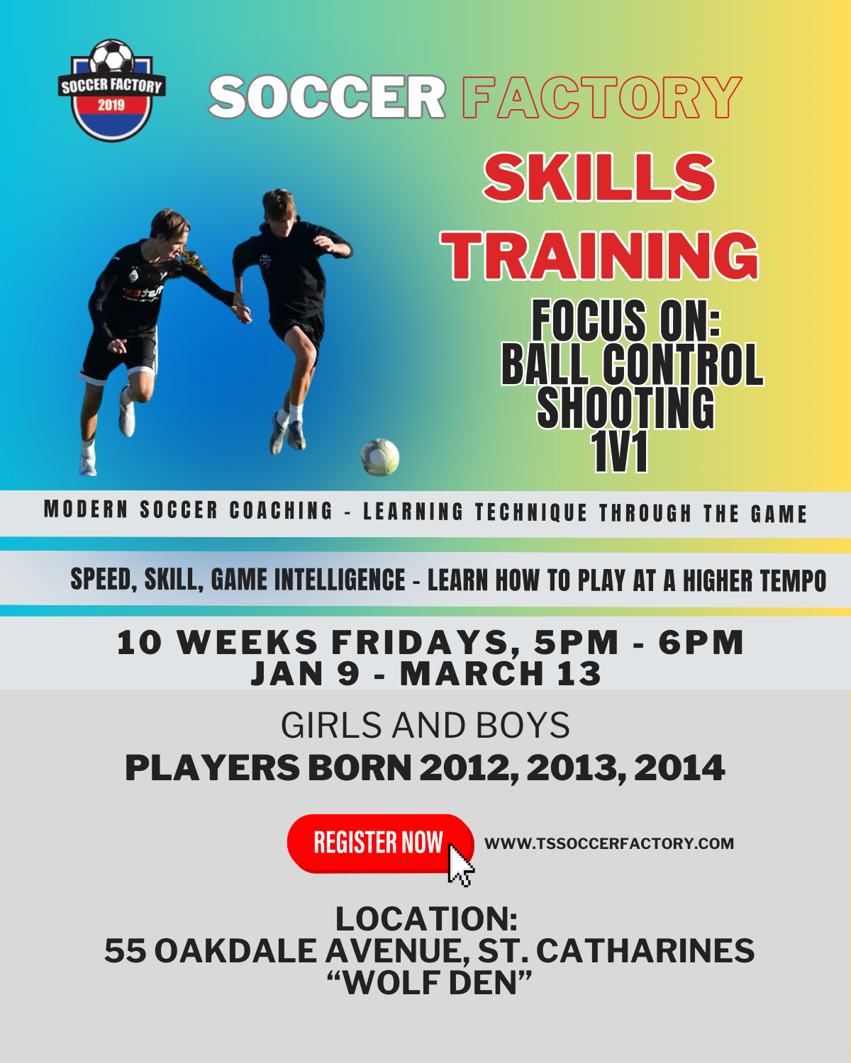 Our Skills Clinic focuses on ball control, shooting, and 1v1 skills, helping players improve their technique, confidence, and game performance through high-intensity drills and personalized coaching.